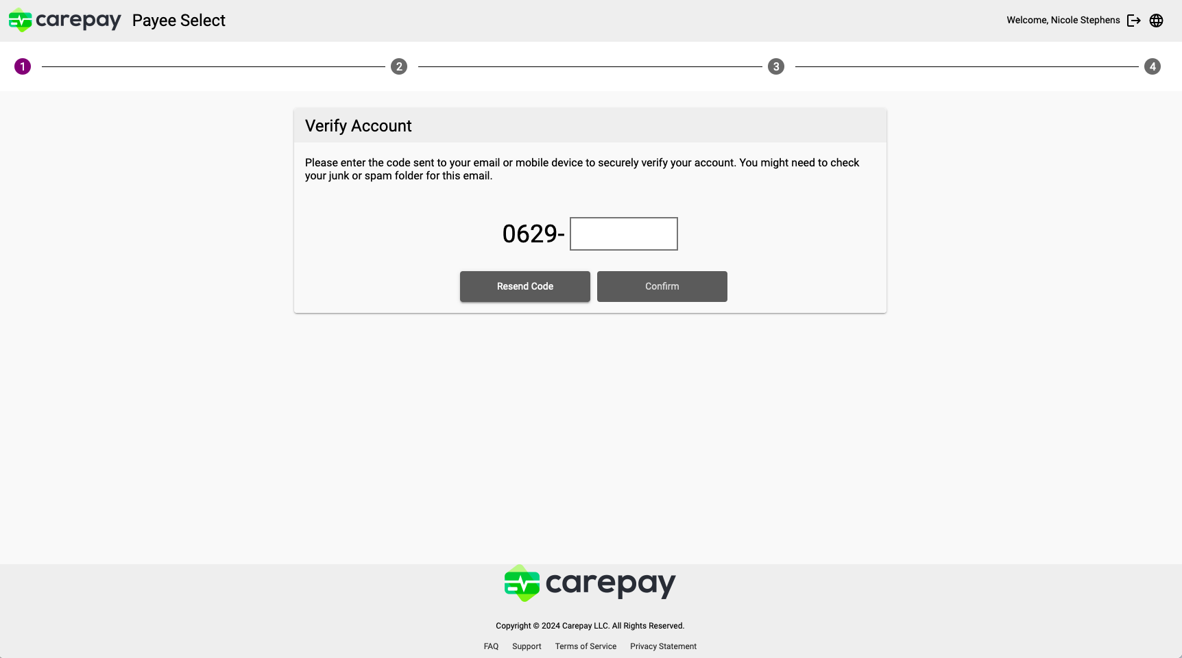 After initially enrolling in ePayments, you will receive an email notification from Carepay for a micro-payment to verify your bank account. You will need to accept the payment and securely add your bank account information for your deposits.