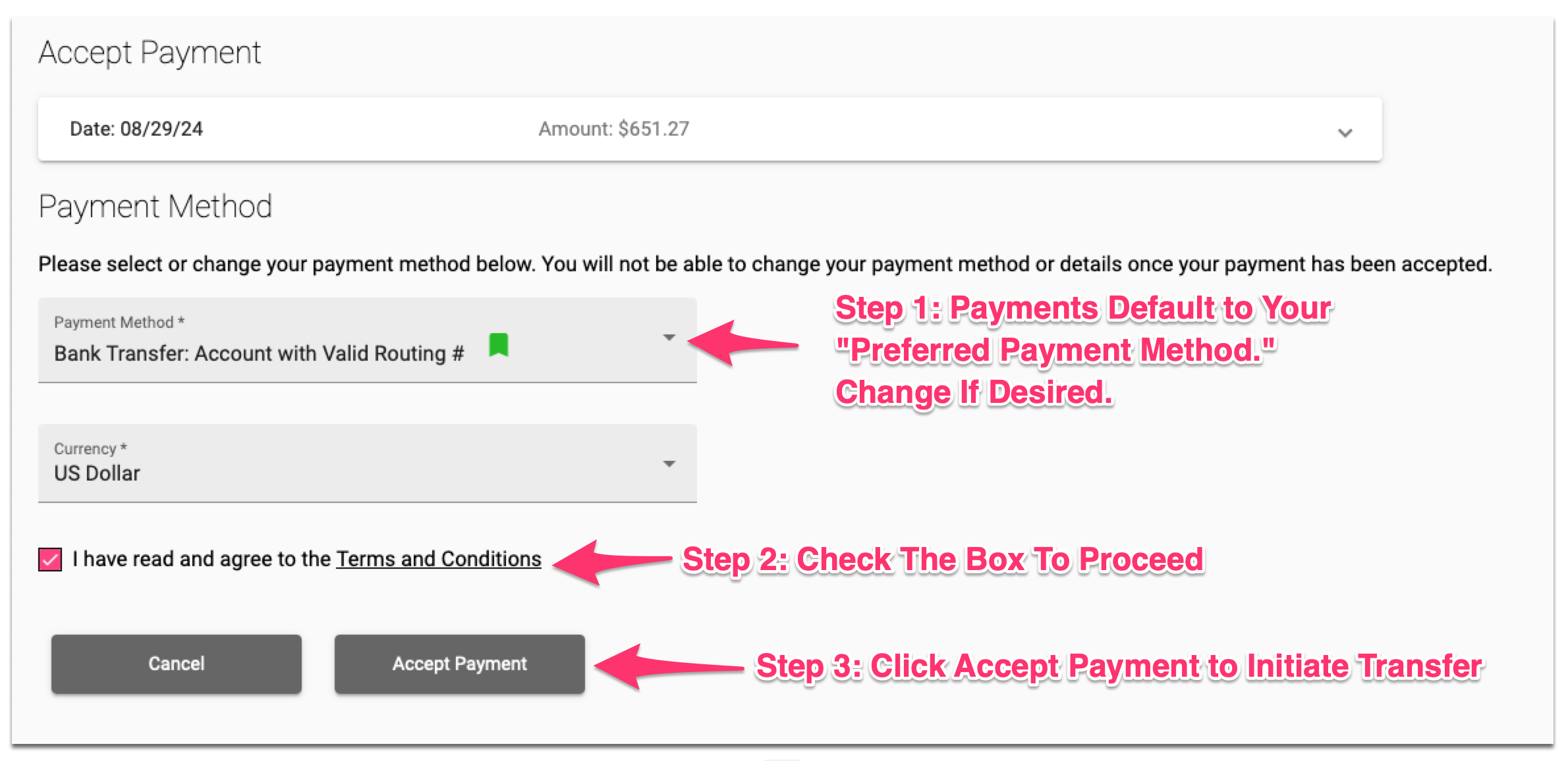 c. Verify the payment details and confirm your acceptance by clicking the "Accept" button.